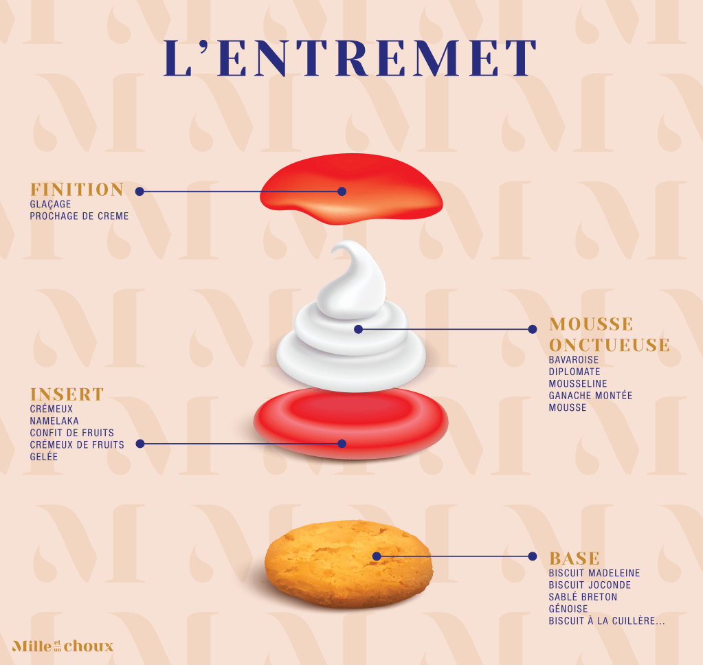 L’entremet fut autrefois un met servi entre deux autres, plutôt salé à la base il a fini par prendre place en dessert à la fin de nos repas en tant que met sophistiqué sucré.